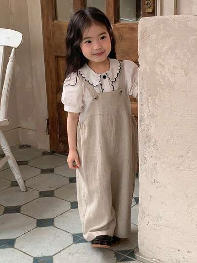 DAZY 女婴休闲纯色翻领连体衣,百搭韩版风格 - 杏色 - 查看 6