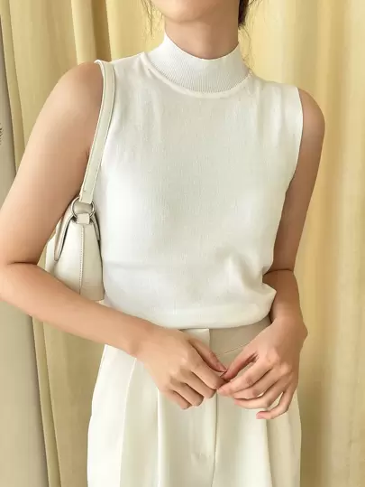 DAZY 高領毛衣背心 - 白色 - 查看 8
