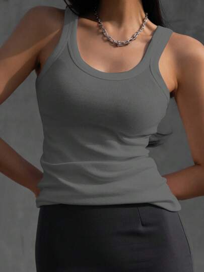 DAZY 素色條紋針織背心上衣 - 灰色 - 查看 1