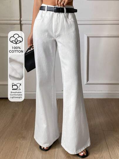 DAZY 女士低腰喇叭牛仔裤,休闲性感白色牛仔裤 - 白色 - 查看 1