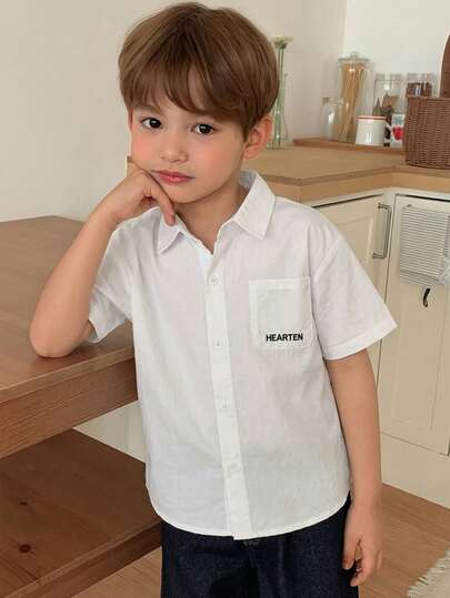 DAZY 男童字母印花口袋前扣休闲短袖衬衫 - 白色 - 查看 1