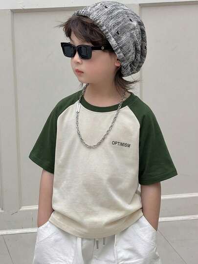 DAZY 男童休闲撞色插肩袖圆领T恤 - 綠色 - 查看 1