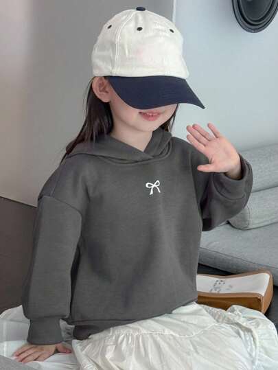 DAZY 女童连帽针织保暖蝴蝶印花长袖卫衣,秋季款 - 深灰色 - 查看 1