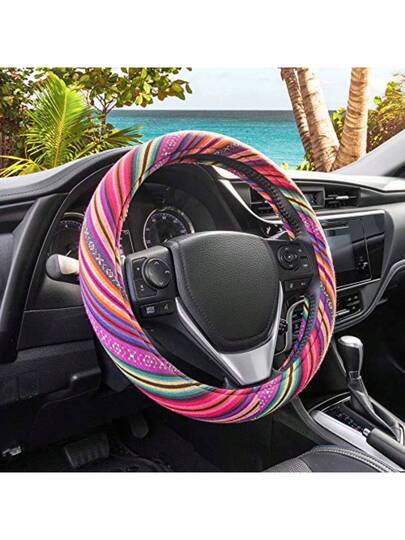 DColorful Woven Boho Bohemian Hippie Style Steering Wheel Cover For Women Fits Most Standard Wheel Sizes 14.515 Inch Colorful Patterns7001