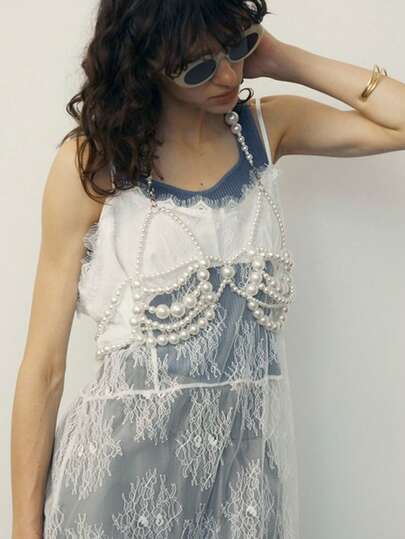 DEKUNER 时尚镂空露背胸链,甜美可爱少女风串珠吊带背心 YK2 设计,适合约会、日常穿着和街拍穿搭 - 白色 - 查看 9
