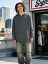 青少年秋冬浅灰色纯色印花抓绒连帽卫衣,保暖,带帽,适合青少年男孩