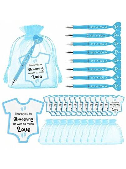 DHarloon 50 Set Baby Shower Pens Favors For Guests It's A Boy Ballpoint Pens Baby Shower Party Favors Blue Cards 50 Organza Bags For Gender Reveal Gifts Game Prizes Souvenirs