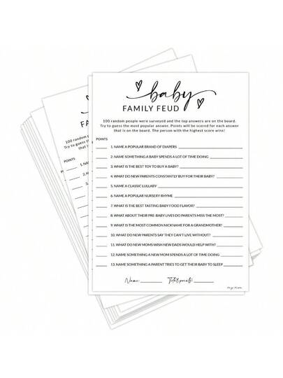 DHerZii Prints Baby Shower Family Feud Game Cards 50 Pack Baby Shower Game Cards With Answer Sheet Minimalist Design Baby Family Feud10