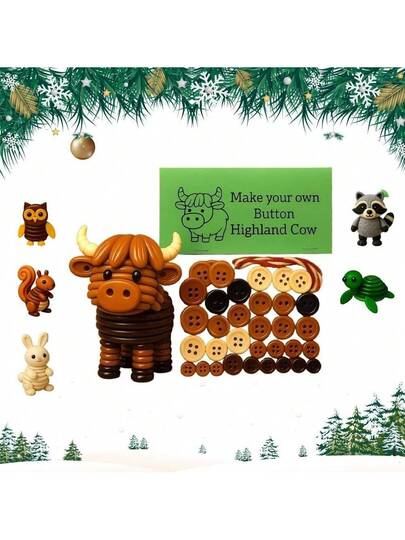 DIY高地牛手工套装,动物主题趣味圣诞纽扣圣诞树装饰套装,包含乌龟、猫头鹰、兔子、圣诞树挂饰,DIY装饰套装(高地牛)(包含材料,需自行组装成成品) - 彩色 - 查看 1