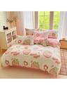 3 件套加厚保暖双面羊毛床上用品套装 - 绿心 + 卡通熊印花图案 | 1 件羽绒被套,2 件枕套,不含被子或枕头 | 舒适温暖透气,冬季必备床上用品