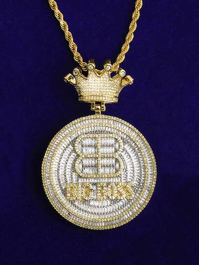 DUBSS 1 件镶钻大老板皇冠吊坠项链,男士款,5A 级立方氧化锆镀金嘻哈饰品 - 字母 - 查看 1