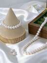 4 件时尚优雅女士仿珍珠首饰套装,包括项链、耳环、手链、14K 金/银珍珠项链、手链和耳环套装,适合日常佩戴或派对,精致的女士珠宝礼物