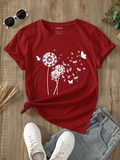 SHEIN EZwear 女士t恤 - 紅色 - 查看 1