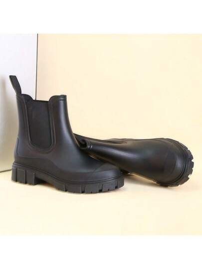 DangDing 女士时尚百搭休闲弹性纹理鞋底厚底军靴、切尔西靴、踝靴、防水雨靴,适合户外、花园、徒步旅行、工作 - 黑色 - 查看 1