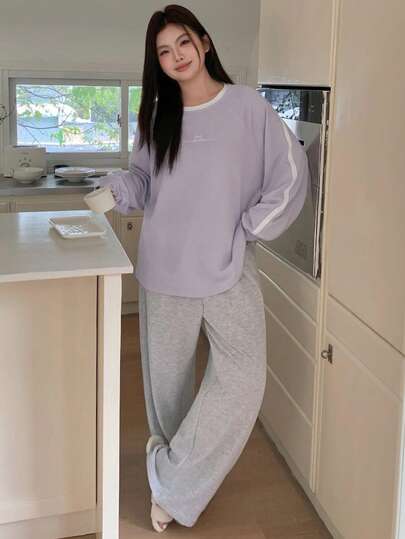 Dazy Plus 大码女式休闲宽松卫衣直筒裤睡衣套装,适合居家休闲和户外穿着,春秋季 - 紫色 - 查看 7