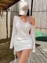 DAZY 女式长袖修身网眼拼接 T 恤外出上衣,秋季女装