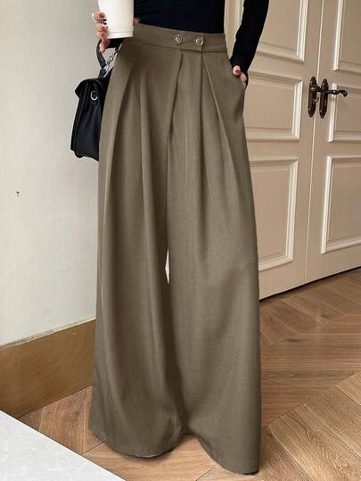 Dazy Tall 女士宽松阔腿休闲裤 - 咖啡棕 - 查看 1