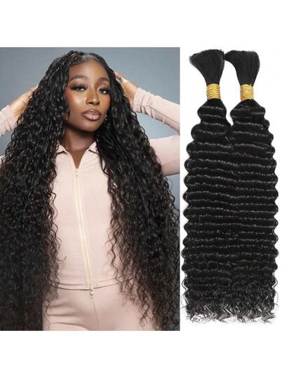 深波浪散装人发,用于编织巴西处女人发接发,两束微编织人发,100 克无纬纱(18 英寸,自然黑) - S1 - 查看 1