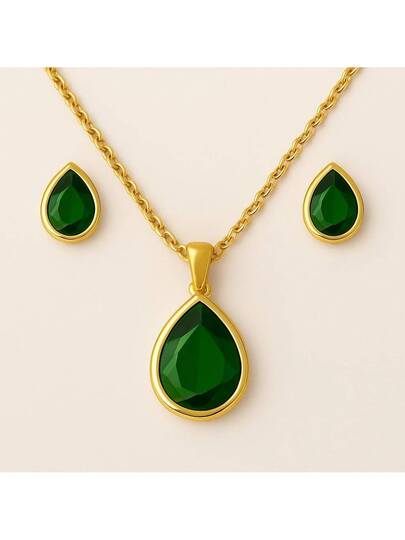 5. Delicate Women's Colorful Zirconia Drop Necklace + Earring Kit