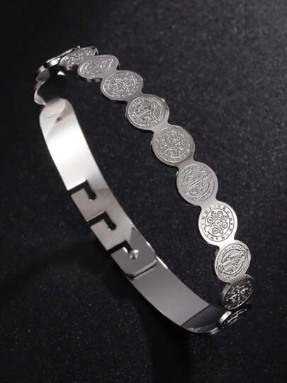 精致不锈钢圣本笃十字架天主教手镯 基督教圣本笃手镯 女士护身符首饰 - 銀色 - 查看 1