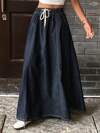 Livesso 女士纯色抽绳腰休闲百搭牛仔半身裙