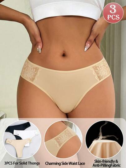 DesireSculpt 3条装女士蕾丝边低腰无痕舒适百搭丁字裤 - 彩色 - 查看 3