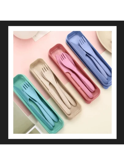 Set Of 3 Cutlery Cases For Travel, Lunch, School, Office - 彩色 - 查看 1