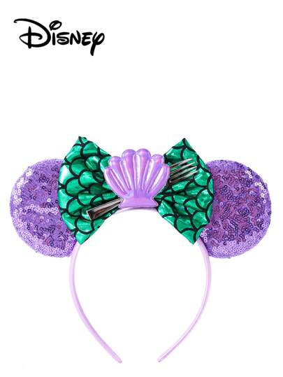 Disney 1件紫色+绿色+紫色贝壳图案亮片发箍,派对头饰,趣味拍照道具,适合生日派对、复活节活动,可爱卡通蝴蝶结发饰,公主装扮装饰