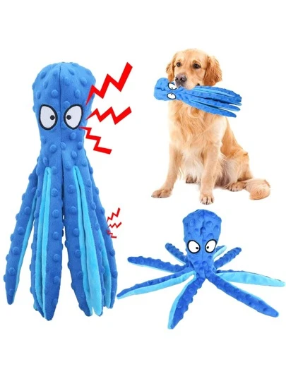 狗狗吱吱作響咀嚼玩具,交互長毛絨狗玩具,訓練工具適用於小,中等和大型犬 - 藍色 - 查看 1