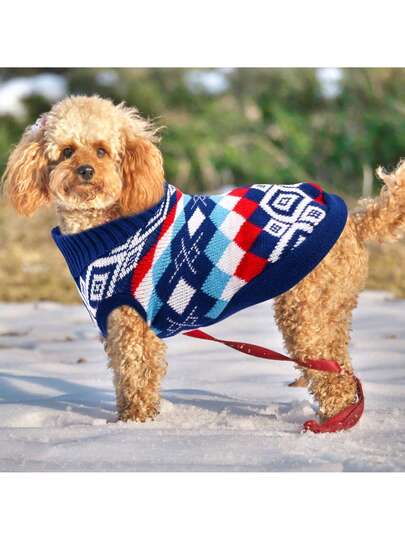 狗毛衣针织衫,蓝白格子保暖狗套头衫针织衫狗套头衫冬季狗外套宠物针织套头衫毛衣可洗狗针织毛衣适合中型犬