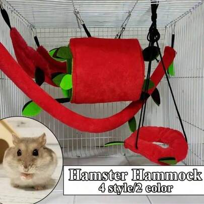 双层加厚小型宠物吊床 - 仓鼠/豚鼠/蜜袋鼯圆形摇床,雪貂保暖窝,带安全带的笼式悬挂睡篮 - 彩色 - 查看 1