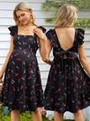 SHEIN 孕妇心形印花侧扣可调节灯芯绒肩带连体衣
