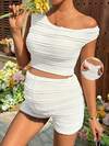 SHEIN 孕婦休閒v領短袖上衣與可調整彈性腰短褲寬鬆2入組套裝