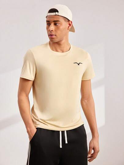 Driftmere 男士休闲海鸥印花短袖 T 恤,夏季 - 杏色 - 查看 1