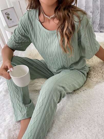 落肩T恤和裤子休闲套装 - 薄荷綠 - 查看 1