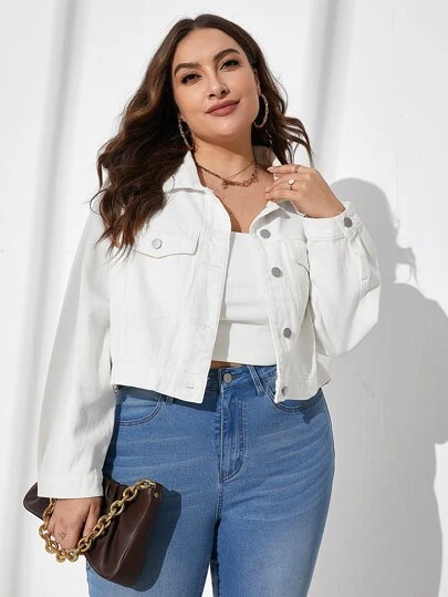 EMERY ROSE 大碼翻蓋口袋牛仔夾克 - 白色 - 查看 1