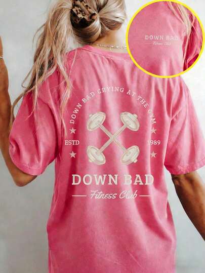 EMERY ROSE 女士圆领印花健身衬衫 - 休闲圆领上衣 - 轻薄T恤,适合所有季节 - 粉色 - 查看 2