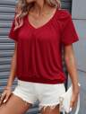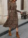 EMERY ROSE 酒红色长袖圆领腰缝 A 字型简约优雅女士连衣裙,适合圣诞节和新年 酒红色长款女士服装
