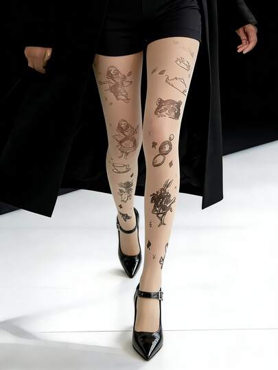 女士复活节主题兔子连裤袜 - 俏皮的兔子图案,舒适透气,适合复活节彩蛋寻宝活动和春季派对 - 杏色 - 查看 5