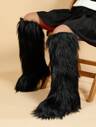 女士冬季保暖圆头防滑毛茸茸中筒靴,时尚雪地靴;女士短款毛茸茸靴