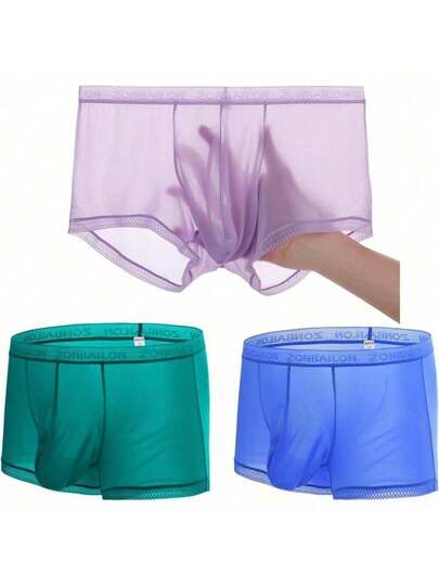 ZONBAILON Breathable Ice Silk Men's Boxer Briefs See-Through Underwear Trunk Transparent Stretch - 3 件裝多用途 - 查看 3