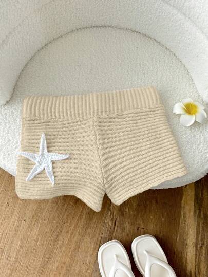 Elamini 女士沙滩度假风海星钩针编织短裤 - 杏色 - 查看 1
