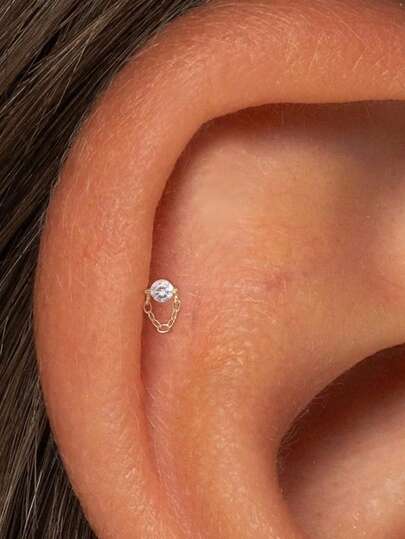 EleRunis 1件 925纯银单钻链平底耳骨耳廓穿孔饰品,适合日常佩戴、婚礼、派对、订婚、周年纪念、情人节等场合。 - 金色 - 查看 1