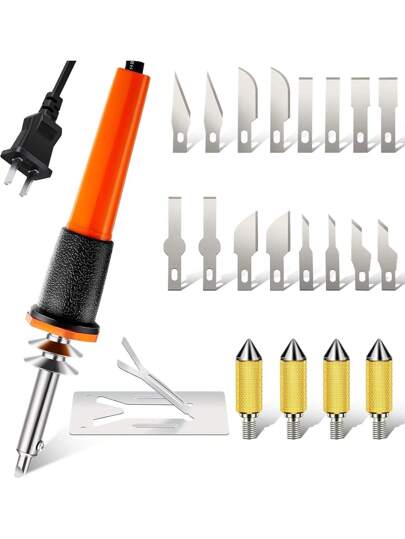 Electric Hot Knife Cutter Kit, Includes Multi-Purpose Hot Knife Plastic Cutter (With 16 Blades, 4 Holders, Metal Base), Hot Knife Foam Cutter For Flexible Thin Plastic Foam Templates