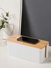 SHEIN 1pc竹木电线收纳盒数据线收纳盒电源线管理盒整理盒插座电脑线架插头盒