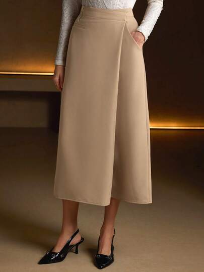 优雅米色高腰A字中长裙,适合春季正式办公场合穿着 - 淺卡其色 - 查看 1