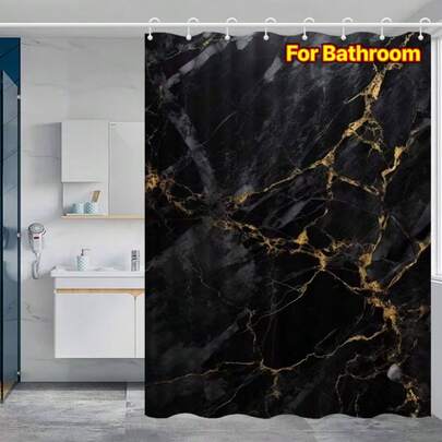 优雅黑色大理石纹理浴帘 - 防水,含挂钩,可机洗涤纶浴室装饰 - A - 查看 1
