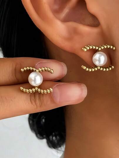 优雅的镀铜环状耳环,适合日常佩戴、约会和聚会 - 金色 - 查看 1