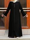 中东风情圆领宽松连衣裙,复古端庄设计,长袖