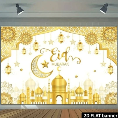 优雅的斋月庆祝横幅 - 8x6 英尺涤纶派对装饰,适用于家庭、花园、工作室和户外活动。多种颜色可选。可用作摄影工作室背景、节日装饰。 - 金色 - 查看 5